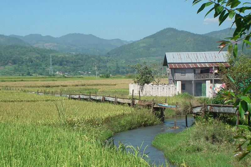 Afterwards, continue walking through Farming villages, with panoramic views of paddy, seasonal crops, mountains, streams and see the life style of SHAN villages, with women weaving baskets and making hand fans from bamboo.