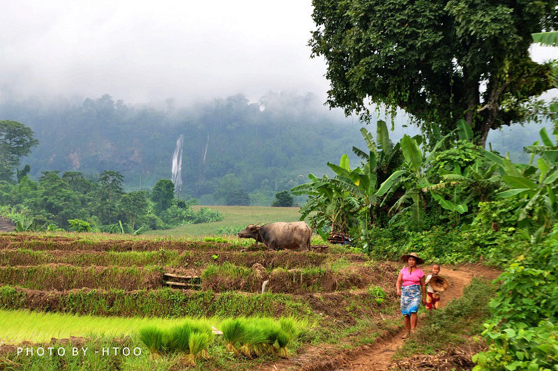 The walk starts from the hotel and goes through rice fields, with an excellent view of an ancient pagoda and a Shan Royal Tomb, until reaching a waterfall which is over 100ft in height and has a beautiful pool at its base. Swimming is possible in the pool. Beside it, there is a limestone cave.