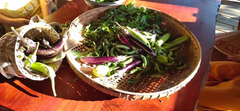 Drive Shan vegetable market. Explore and study about the basic ingredient of Shan food. Do a little shopping here. Keep moving on Pick up to cooking place village. Meet local cook chief and pick your own vegetables along the fence, villagers’ garden and in the rice field. Cooking will be started when we arrive our Riverview Lodge. You will be learning way of cooking Shan Food and practicing and enjoying your meal. After meal and relaxing a bit we will be walking back to the town which takes 1 hour (alternatively transport is available).