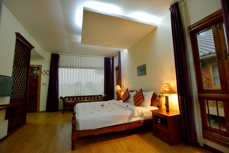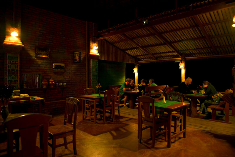 The lodge is comprised of just 13 rooms, constructed in a way that offers a contemporary twist on the traditional Shan home. Our guests have the choice between double and twin rooms. Both style of rooms are equipped with beautiful locally-crafted wooden framed beds, walk in shower with hot water, satellite TV, mini-bar, stocked fridge, and safety deposit box. We are also able to offer free WI-FI at the restaurant as well as A-C and heating. We pride ourselves on our room interior’s originality and detail as careful thought and consideration was put into both. Our private balconies are however our most talked about feature. The back balcony of each of our rooms overlooks the Douthawady River while the front porch offers a spectacular view of the adjacent rice paddy fields and rolling mountain line.